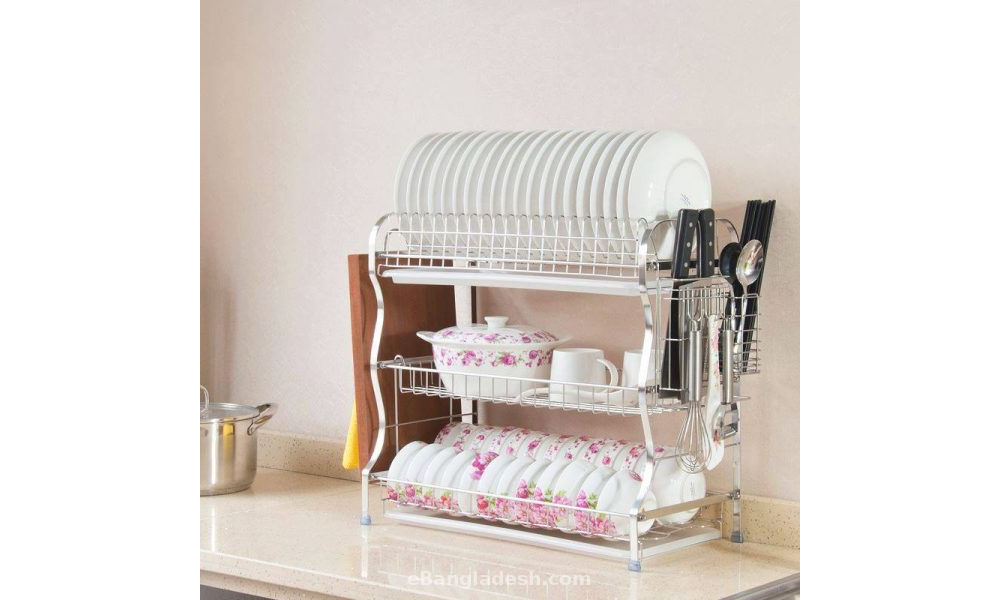 The 3 Layer Stainless Steel Kitchen Rack provides durable, rust-resistant storage for utensils and dishes. Compact and sturdy, it keeps your kitchen organized and clutter-free.